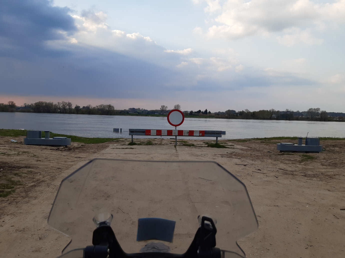 Fragment drogi ułożonej z płyt betonowych prowadzącej do miejsca przygotowanego do przeprawy pontonowej. Wiosną po śnieżnej zimie zalewany jest na odcinku około 100 m przez wodę z topniejącego śniegu, której głębokość nie przekracza 30cm. Droga dla motocykli cross i enduro. Przy samej wiśle jest nie zalewany odcinek ok 40 m gdzie można się zatrzymać.
