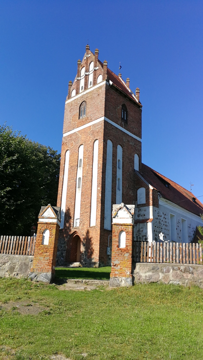 Pierwszy kościół wybudowano już w XIV w., po zniszczeniach odbudowany w 1581 r. i konsekrowany przez biskupa Marcina Kromera. W XVI w. dobudowano wieże od strony zachodniej. Odbudowany w 1689 r. po zniszczeniach dokonanych przez wojska szwedzkie. W 1725 r. odnowiono zachodnią część budowli wraz z wieżą. Sama wieża remontowana była jeszcze w 1880 roku. W czasie II wojny światowej kościół został uszkodzony. Gruntowny remont kościoła przeprowadzono w latach 1946-1947, a w 1951 wyremontowano wieżę.