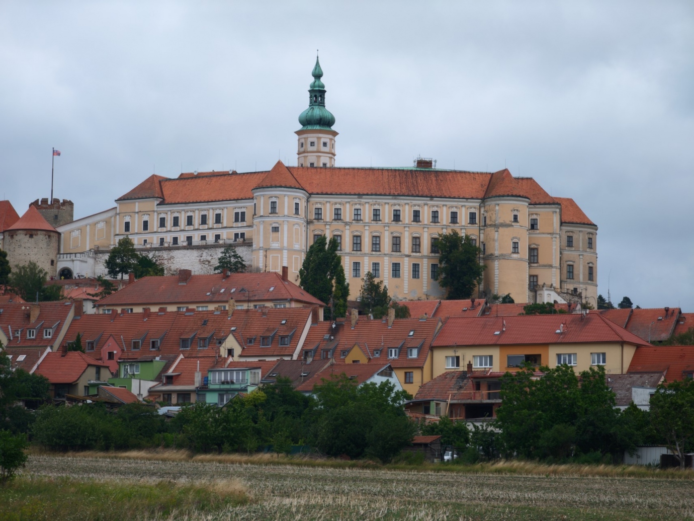 Barokowy zamek w centrum Mikulova w południowej części Czech, na południu Moraw. Znajduje się na Wzgórzu Zamkowym (Zamecký vrch) i jest dominującą budowlą miasta. Obecnie w pałacu znajduje się ekspozycja stała Muzeum Regionalnego w Mikulovie. Organizowane są w nim również liczne wydarzenia kulturalne, m.in. coroczne Winobranie (święto zbiorów winogron). - źródło: Wikipedia https://pl.wikipedia.org/wiki/Pa%C5%82ac_w_Mikulovie