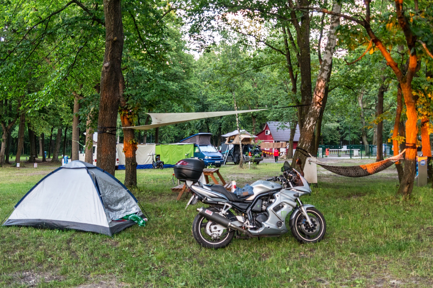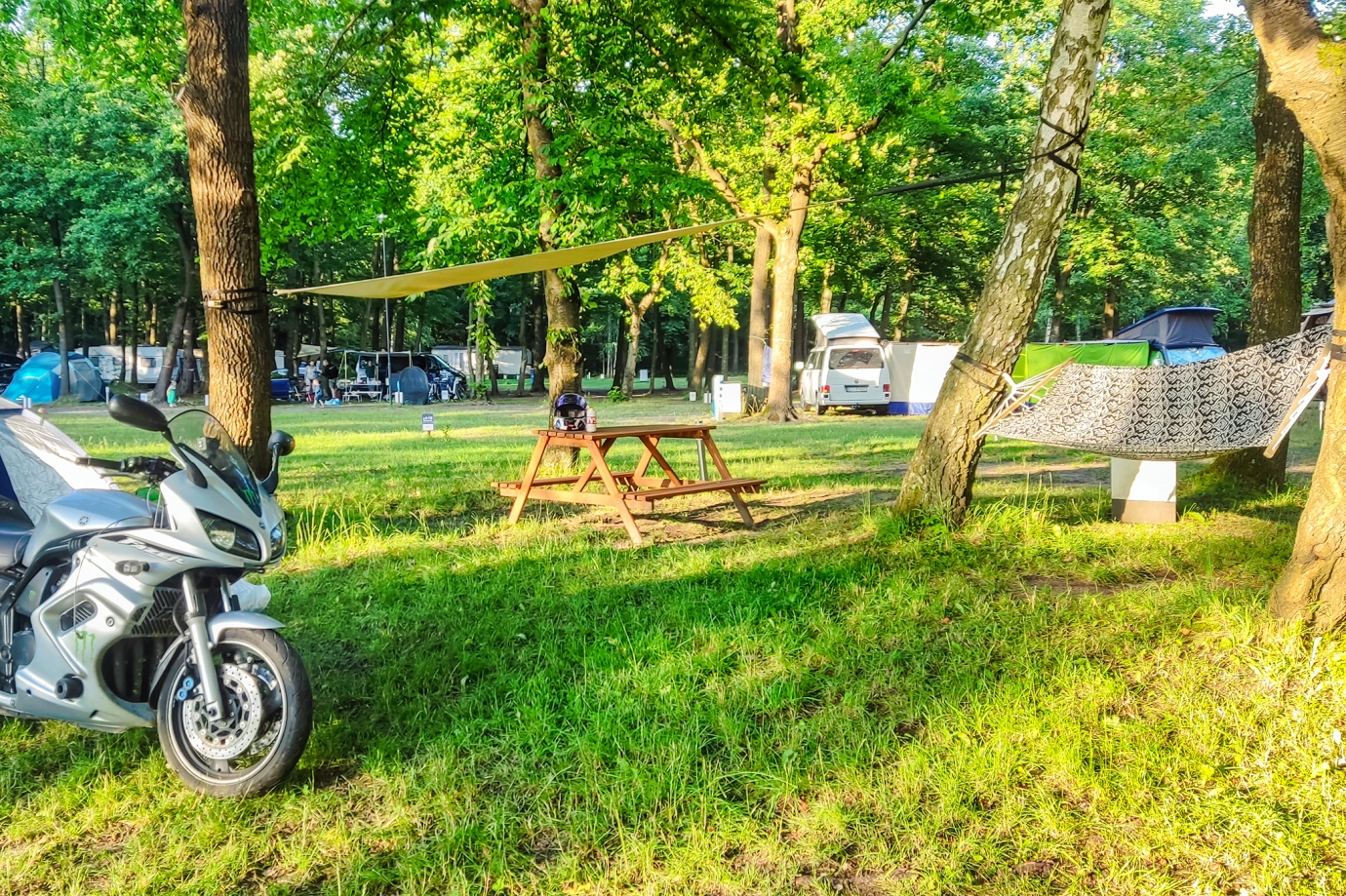 Świetny kemping. Jezioro i plaża niekoniecznie musi się podobać, bo małe i zarośnięte. Ale właściciel się stara, czyszcząc wodę z zarośli. Duże parcele przewidziane dla kamperów i samochodów. Dla mniejszych przyjezdnych, czyli motocyklistów i rowerzystów przewidziane osobne miejscówki pośród drzew (patrz zdjęcie). Pierwszy raz spotkałem się z tak zabezpieczonym kempingiem - nikt nie wejdzie ani nie wyjdzie bez karty elektronicznej. Nawet do WC. W nocy pilnowany przez ochronę. Infrastruktura dość rozrzucona - kuchnia z pralnią przy recepcji, a sanitariaty na drugim końcu kempingu. Organizacja świetna. Wczasowiczów sporo, ale tłoku nie mam bo teren kempingu duży.Dodaj opinię