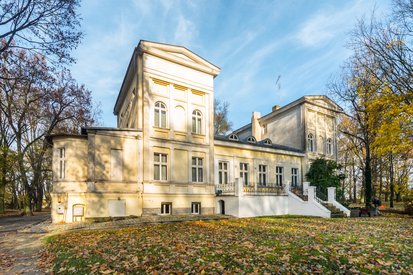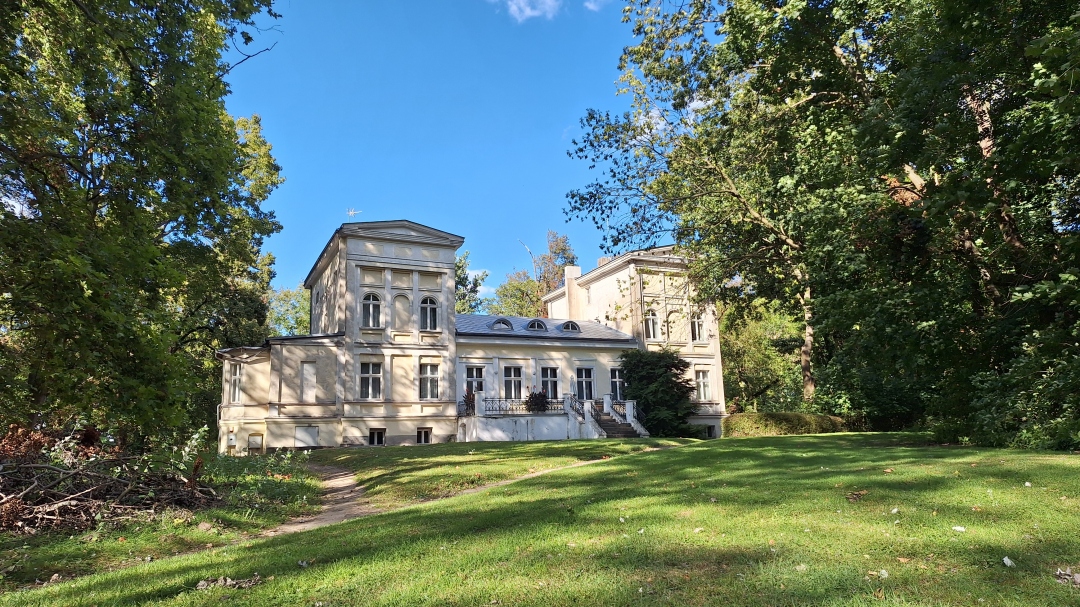 Pałac z ok. 1870 roku Arnolda i Adeli Tieman. Miejsce w sprzedaży, można podejść do jeziora, fajnie i spokojnie. Budynek pałacu jest ciekawy i schludny. W środku znajduje się oddział biblioteki Raczyńskich oraz miejsca zamieszkania. Pałac znajduje się w parku, który otwarty dla spacerowiczów.