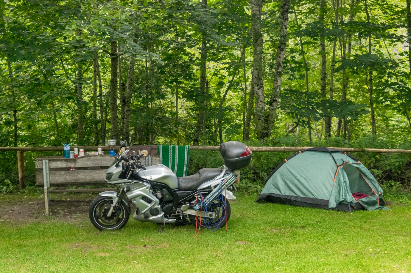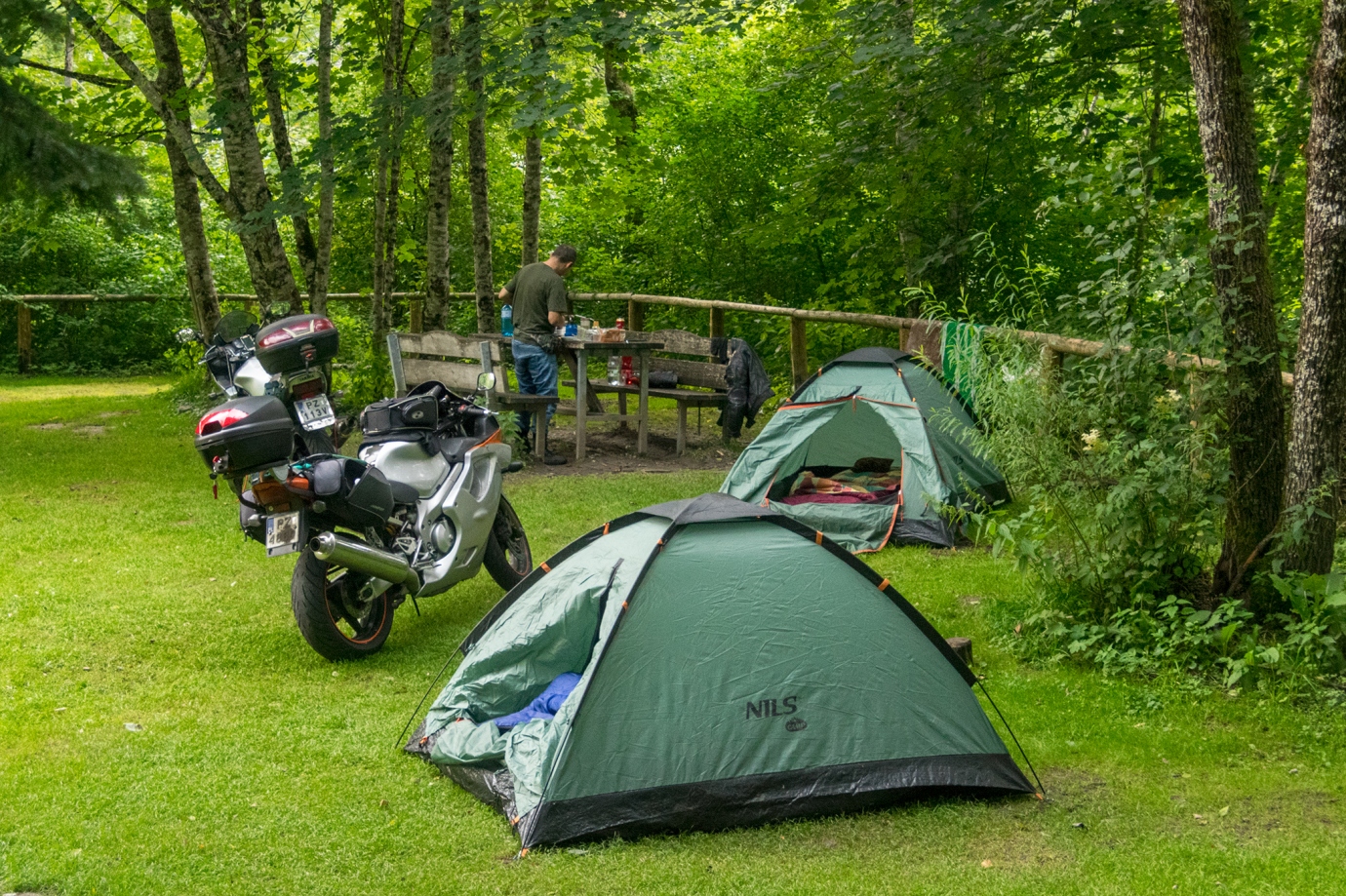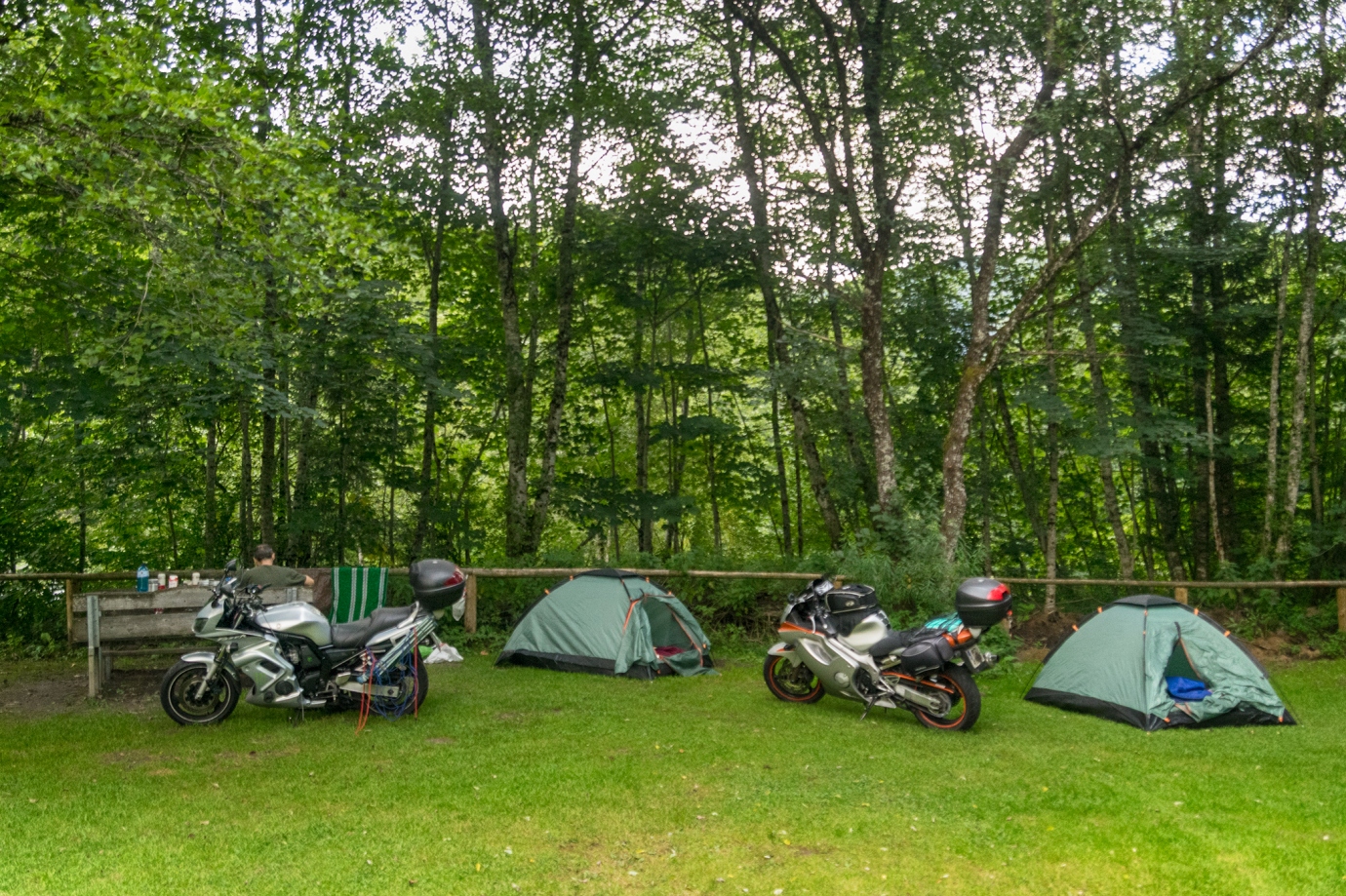 Fajny i przyjemny kemping. Podzielony na dwie części: kampery i namioty. Część namiotowa na ładnych zielonej trawce, gdzie są do dyspozycji dwa stoły z ławkami. Toalety i WC eleganckie z prysznicami z ciepłą wodą. Cena za 1 osobę + namiot + motocykl = 22€.
