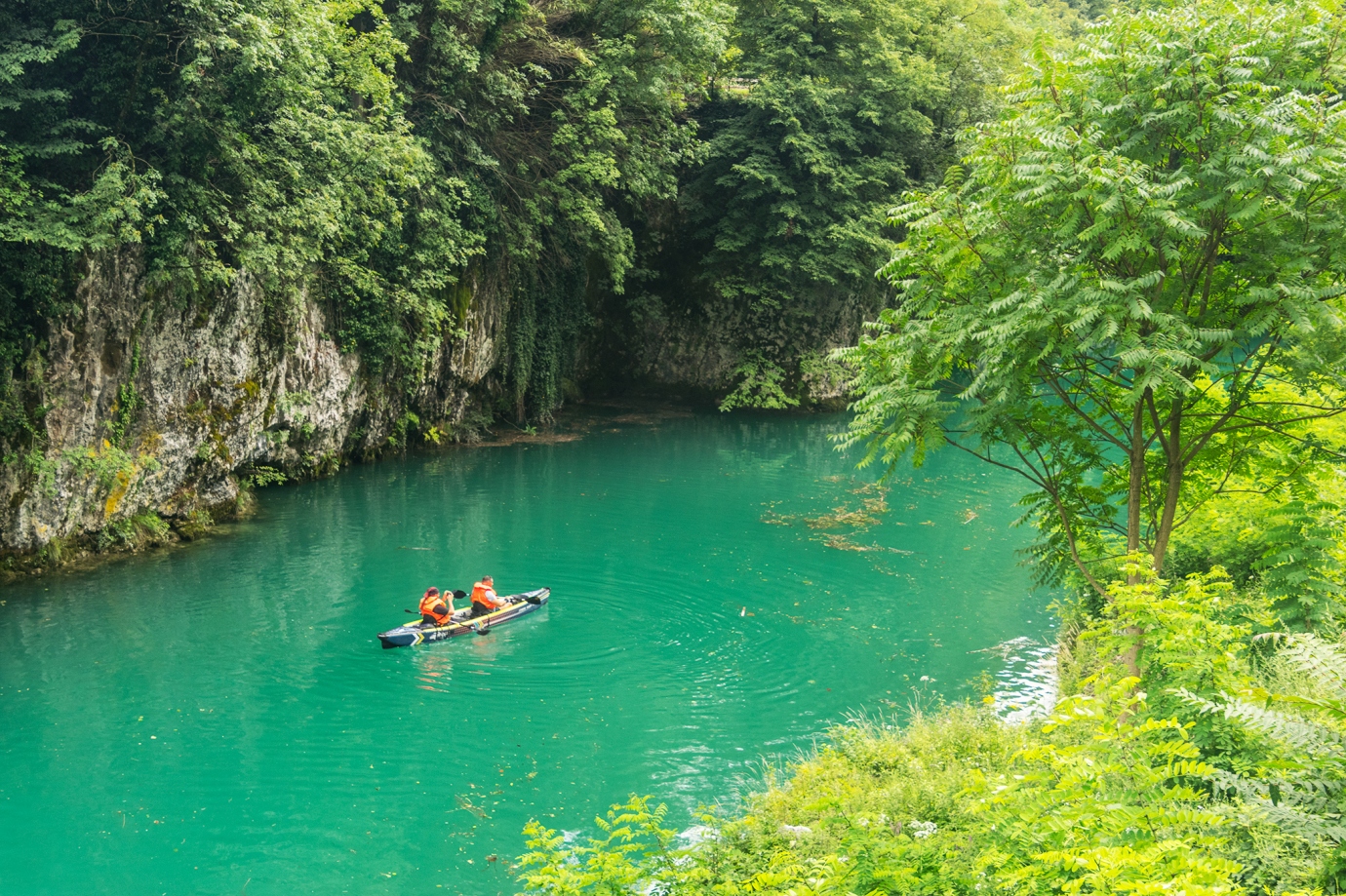 Młodzi mieszkańcy tej miejscowości skaczą z niego do rzeki o turkusowym kolorze.