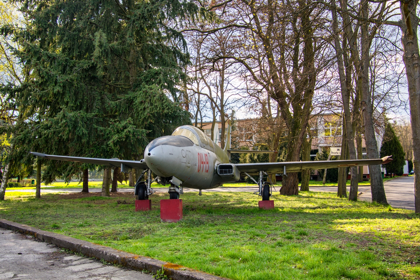 Eksponat samolotu TS 11 Iskra. Teren otwarty.