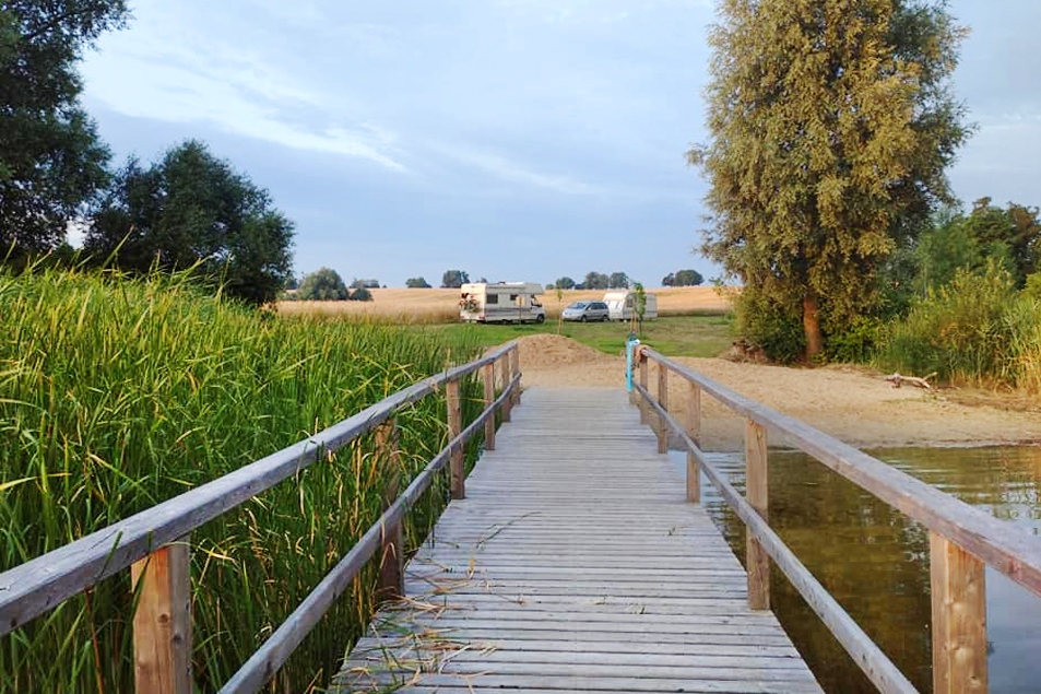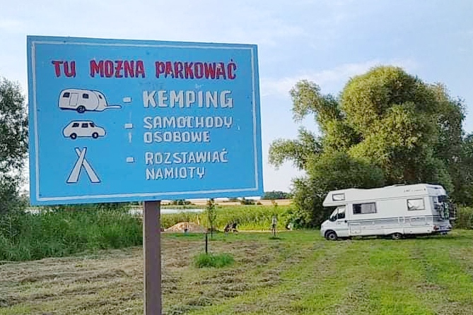 Miejscówka darmowa. Jak popada, to trochę grząsko, ale da się przejechać. Jest śmietnik. Okolica bardzo ładna. Cisza, spokój, kilku wędkarzy. Z wioski przyjeżdżali na zwiady, ale nikt nic nie mówił, że tam nocujemy. Spoko na jedną noc. Sporą ilość miejscowej młodzieży spędzającej czas wolny.