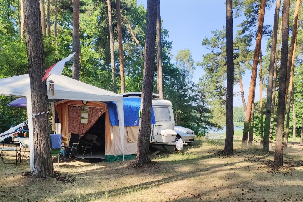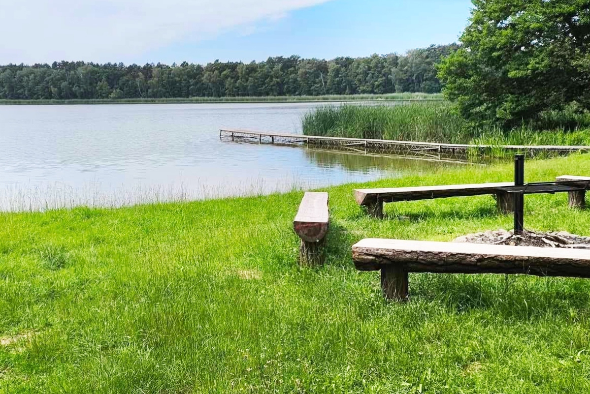 Fajna miejscówka w lesie, z super dojazdem (droga przeciwpożarowa). Wieczorem ognisko, rano obserwowanie rybaków. Poza sezonem pustki. Duże zejście do wody, choć woda raczej nieprzejrzysta. Sporo dość równego miejsca na namioty, przyczepy, kampery. Dojazd ok. 800 m. równą drogą gruntową od m. Grójec Wielki z drogi nr 303. Zjazd oznaczony, droga leśna do pola dostępna. Na miejscu śmietnik (obecnie pełny po czubek), murowana sławojka. Miejsce na ognisko plus ławeczki. Cicho i spokojnie, ale pewnie w weekend może być głośno. Atrakcją jest lądowanie samolotów na lotnisko Babimost. Lecą tuż nad głową, ale ruch samolotów bardzo mały (2-3 lądowania i starty dziennie). Sygnał T-Mobile i Play bardzo dobry. NA ZDJECIACH CENNIK, Nikt na miejscu nie kasuje, tylko trzeba przelew zrobić. Świetne miejsce na biwak. Sporo miejsca, szeroki dostęp do wody.