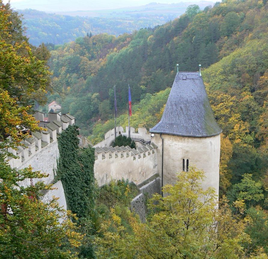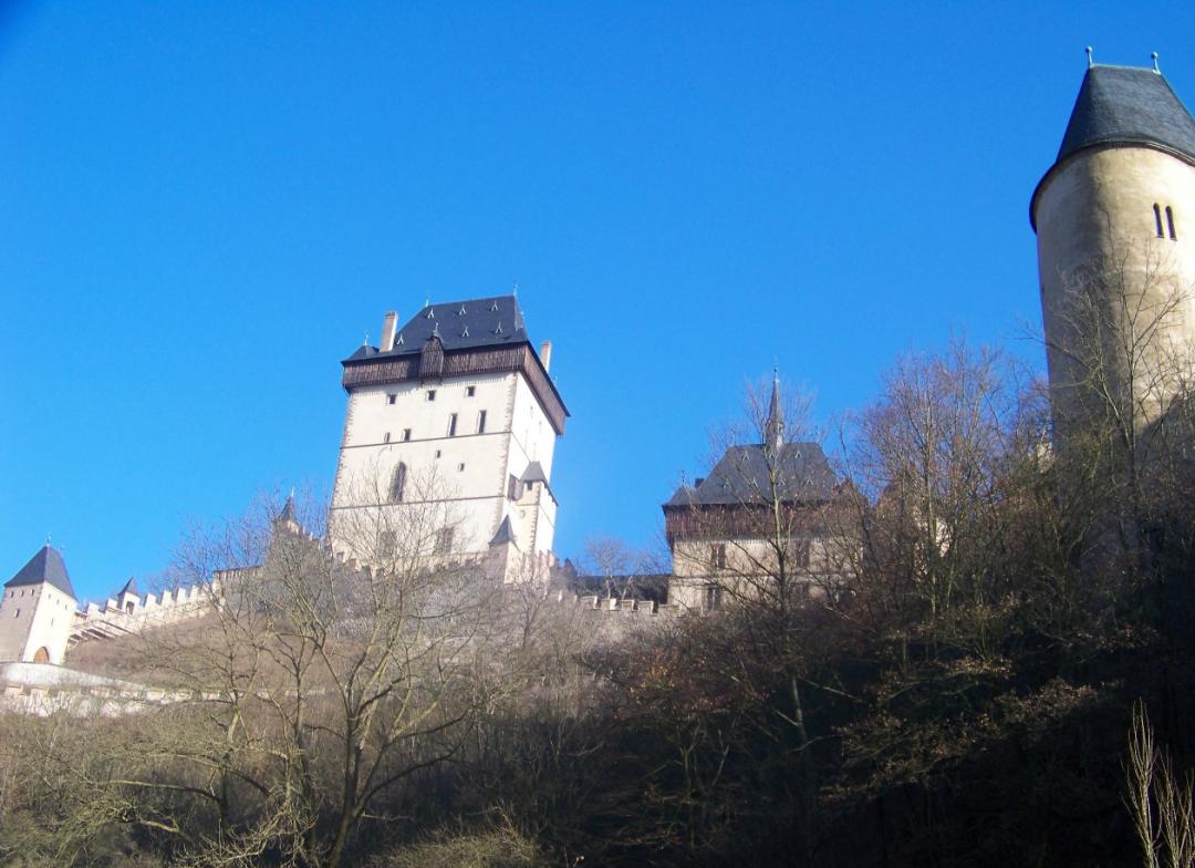 Karlštejn (Karlsztejn) − gotycki XIV-wieczny zamek w Czechach, w powiecie Beroun, w miejscowości Karlštejn, 8 km na wschód od miasta Beroun. Źródło: Wikipedia
