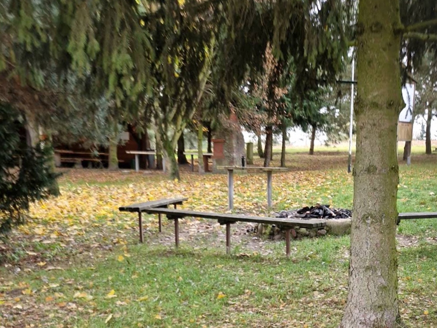 Duża wiata z ławkami i stołami. Fajne klimatyczne miejsce z możliwością rozpalenia grilla lub ogniska. Miejsce do nocowania na dziko. W sezonie letnim woda i prąd oraz toalety.